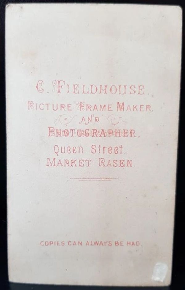 Christopher Thomas Fieldhouse Photographer & Framemaker of Queen Street was born in Barnard Castle, Durham in 1837. He was first seen in Rasen around 1871 seen as a painter at 54 Queen Street. He turned his artistic flare to photography and took many of the old photos of the town seen on postcards, many of which have been more recently posted in Market Rasen Memories. Following his death in 1903, his son C.S. Fieldhouse carried on the business at 37-39 Queen Street which developed into the Newsagents that some of you may remember.